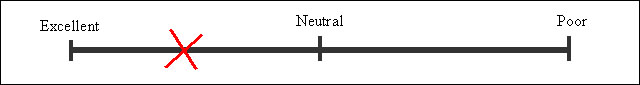 Sliding scale survey questions can also support your data gathering needs. These usually use a horizontal line with Minimum, Center/Neutral and Maximum points indicated. The survey respondent simply indicates where their response falls with a mark on the line. This is typically an "X" in traditional paper surveys, and a mouse-click for online versions.